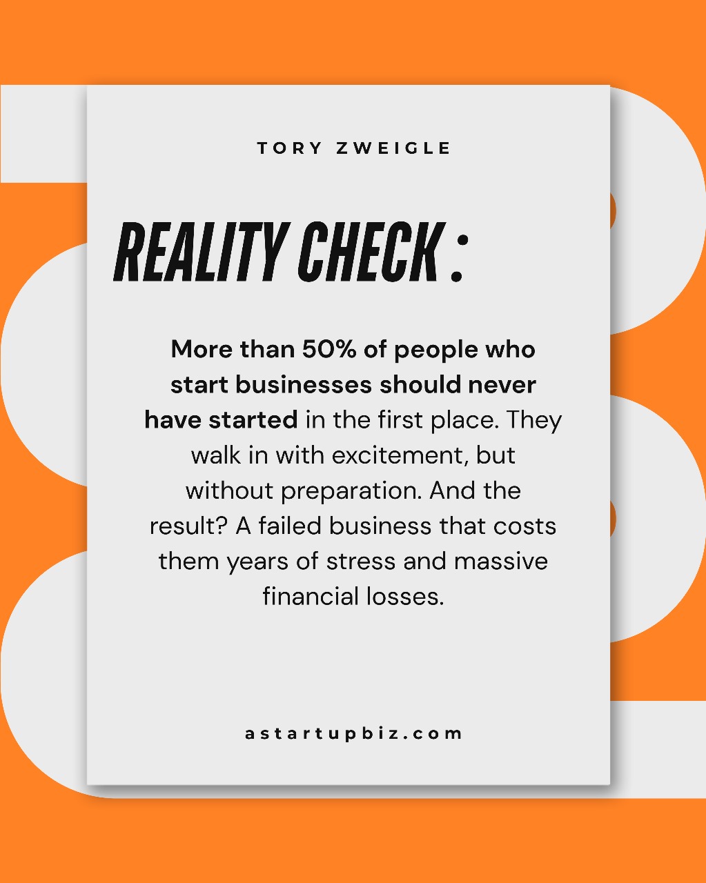 More than 50% of people who start businesses should never have started in the first place. They walk in with excitement, but without preparation. And the result? A failed business that costs them years of stress and massive financial losses.