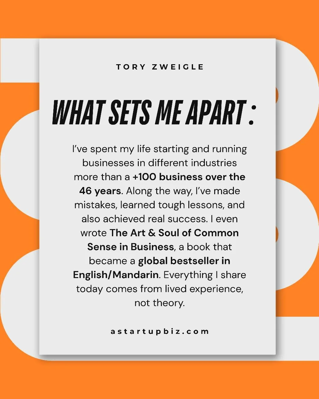 I’ve spent my life starting and running businesses in different industries more than a +100 business over the 46 years. Along the way, I’ve made mistakes, learned tough lessons, and also achieved real success. I even wrote The Art & Soul of Common Sense in Business, a book that became a global bestseller in English/Mandarin. Everything I share today comes from lived experience, not theory.