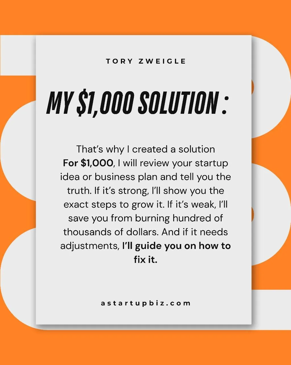 That’s why I Created a solution For $1,000, I will review your startup idea or business plan and tell you the truth. If it’s strong, I’ll show you the exact steps to grow it. If it’s weak, I’ll save you from burning hundred of thousands of dollars. And if it needs adjustments, I’ll guide you on how to fix it.